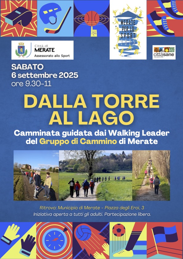 Tra le iniziative di promozione della attività fisica previste per  ”Merate per lo Sport”, sabato 6 settembre è organizzata una camminata speciale con partenza alle 9.30 dalla piazza del Municipio a cui possono partecipare liberamente quanti volessero provare per la prima volta l’esperienza del Gruppo di Cammino.