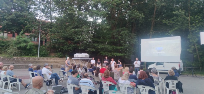 Il campetto da basket di via del Fontanile è stato allestito per l’occasione con proiettore, maxischermo e sedie e dopo una breve introduzione da parte del sindaco Ivan Pendeggia e degli amministratori la rassegna è entrata nel vivo.