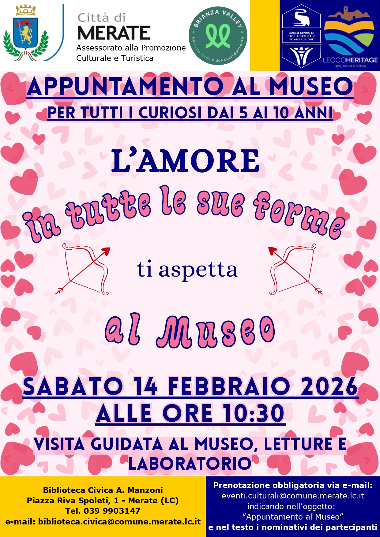 L’amore si scopre al museo: un appuntamento speciale per i piccoli curiosi. C’è un modo originale e sorprendente per avvicinare i bambini alla cultura, alla lettura e alle emozioni: portarli al museo e lasciarli esplorare il mondo… dell’amore. Sabato 14 febbraio 2026, alle 10.30, il Museo Civico di Storia Naturale “Don Michelangelo Ambrosioni” di Merate apre le sue porte ai più giovani con un nuovo imperdibile “Appuntamento al museo”, pensato per tutti i curiosi dai 5 ai 10 anni.