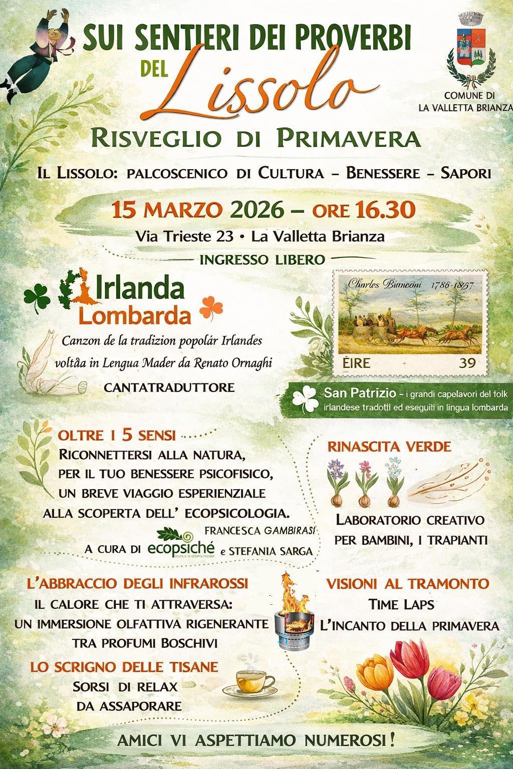 La primavera bussa alle porte e lo fa con un pomeriggio ricco di cultura, natura e tradizione. Domenica 15 marzo, alle 16.30, il Lissolo di La Valletta Brianza ospiterà l’evento “Sui sentieri dei proverbi del Lissolo – Risveglio di Primavera”, un appuntamento pensato per celebrare la nuova stagione tra musica, benessere e sapori.