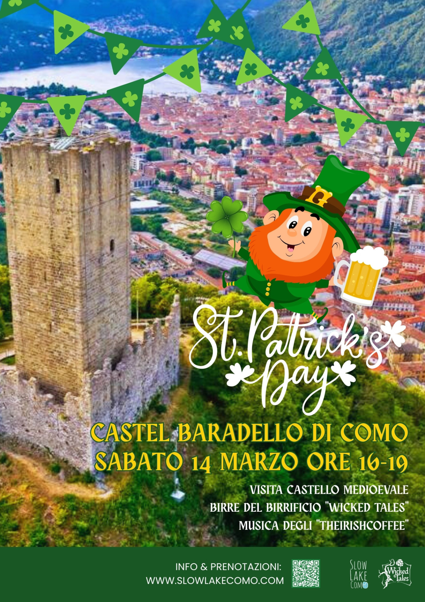 Un pomeriggio tra storia, musica e sapori irlandesi nel cuore di Como. Sabato 14 marzo il Castel Baradello apre le porte a un evento speciale dedicato alla festa di San Patrizio. Dalle 16 alle 19 sono in programma visite guidate al castello medievale, accompagnate da degustazioni di birre artigianali del birrificio Wicked Tales e musica tradizionale dal vivo con gli TheIrishCoffee.