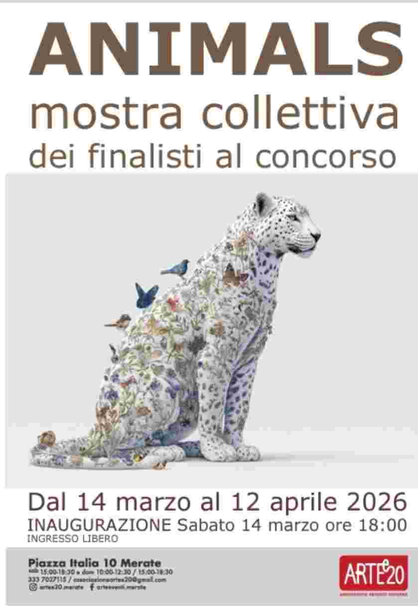 L’arte incontra il mondo animale nella mostra collettiva “Animals”, che dal 14 marzo al 12 aprile animerà gli spazi di Arte20 a Merate. L’esposizione riunisce i finalisti dell’omonimo concorso artistico, offrendo al pubblico uno sguardo originale e creativo sul rapporto tra uomo, natura e fauna.