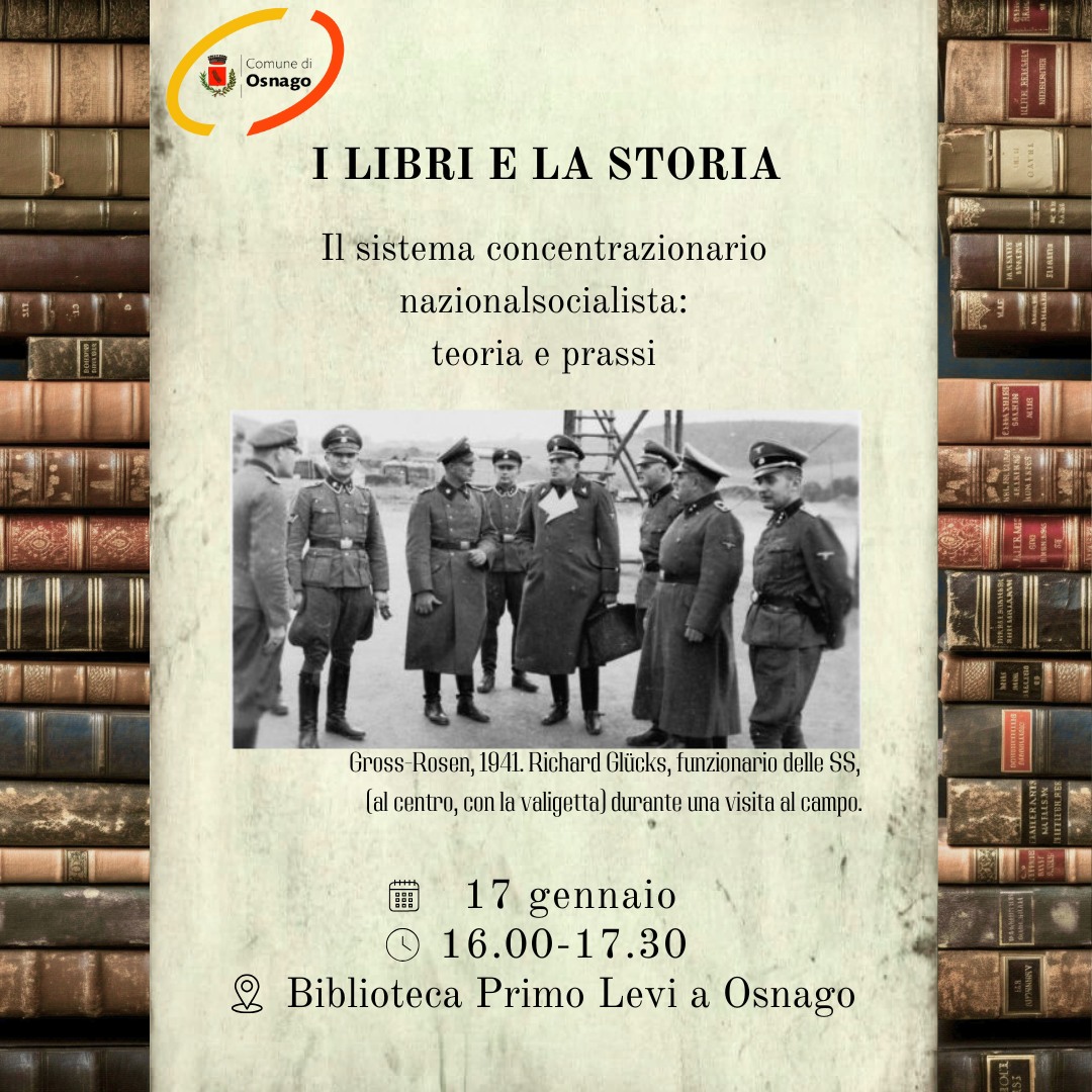 Venerdì 17 gennaio, dalle 16.00 alle 17.30, presso la Biblioteca Primo Levi di Osnago, un appuntamento di approfondimento storico dedicato all’organizzazione e al funzionamento del sistema dei campi di concentramento nazisti, tra ideologia e realtà dei fatti. Un’occasione di riflessione e memoria, attraverso libri e fonti storiche, per comprendere uno dei capitoli più drammatici del Novecento. Ingresso libero.