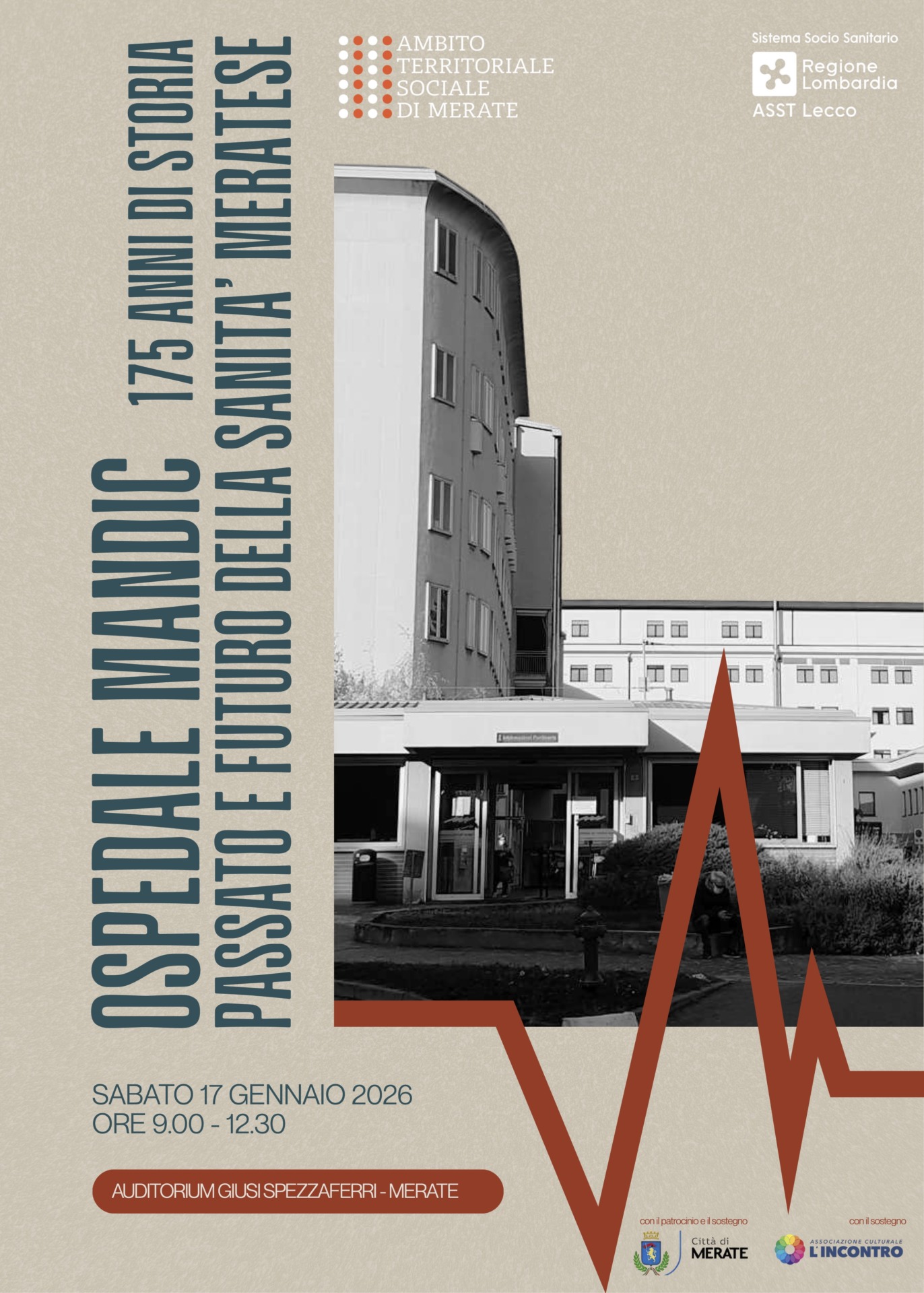 Un evento per celebrare 175 anni di storia, passato e futuro della sanità meratese. Merate celebra i 175 anni dell’Ospedale San Leopoldo Mandic con un evento pubblico dal titolo “Ospedale Mandic – 175 anni di storia. Passato e futuro della sanità meratese”, in programma per sabato 17 gennaio alle ore 9 presso l’Auditorium “G. Spezzaferri” di Merate. Un’iniziativa organizzata da ASST Lecco e dall’Ambito Territoriale Sociale di Merate, con il patrocinio del Comune di Merate e il sostegno dell’Associazione culturale L’incontro. A concludere la mattinata l’inaugurazione della mostra fotografica “Ospedale San Leopoldo Mandic – 175* anniversario”, a cura di Giulia Perego, che accompagnerà i visitatori fino al 25 gennaio prossimo in un percorso visivo attraverso la storia dell’ospedale.
