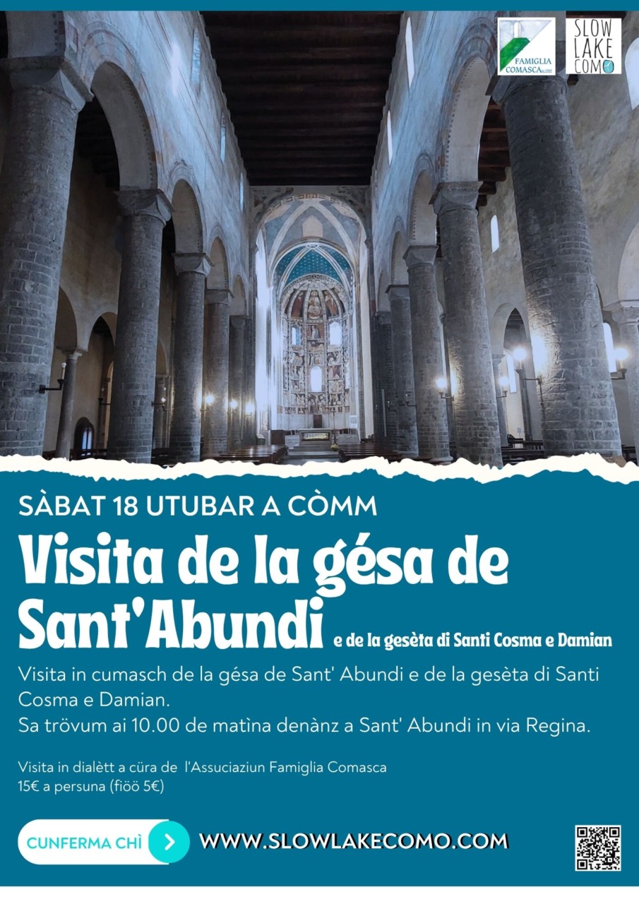 Sabato 18 ottobre, visita in dialetto comasco alla chiesa di Sant’Abbondio e alla chiesetta dei Santi Cosma e Damiano. Il ritrovo è fissato alle 10 del mattino, davanti a Sant’Abbondio in via Regina. Visita in dialetto a cura dell’associazione “Famiglia Comasca”.