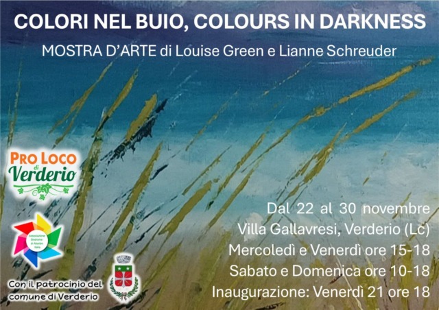 Fino al 30 novembre, gli spazi di Villa Gallavresi (Verderio) ospiteranno la mostra d’arte “Colori nel buio, Colours in Darkness”, un percorso pittorico firmato da Louise Green e Lianne Schreuder.