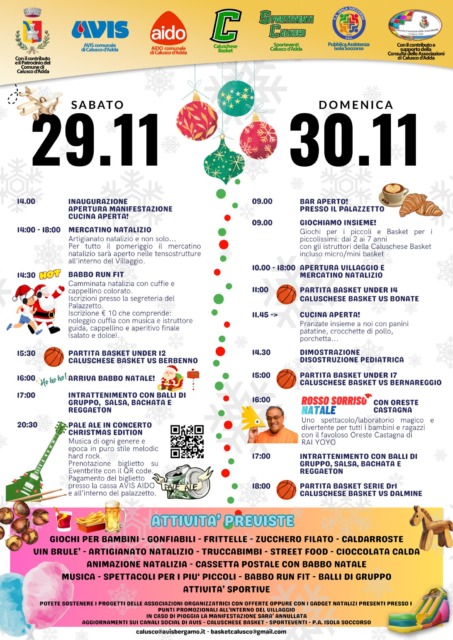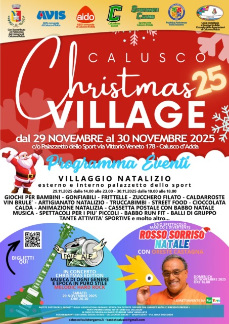 A Calusco d’Adda arriva il Calusco Christmas Village, l’evento natalizio che unisce festa, solidarietà e volontariato grazie alle associazioni locali. Un appuntamento ricco di attività sportive, mercatini artigianali, street food e dolci tipici. Per i bambini ci sono laboratori, gonfiabili e l’incontro con Babbo Natale, con la partecipazione speciale di Oreste Castagna di Rai YoYo. Spazio anche alla musica con il concerto rock natalizio dei Pale Ale. Un’occasione per vivere insieme l’atmosfera del Natale e sostenere la comunità.