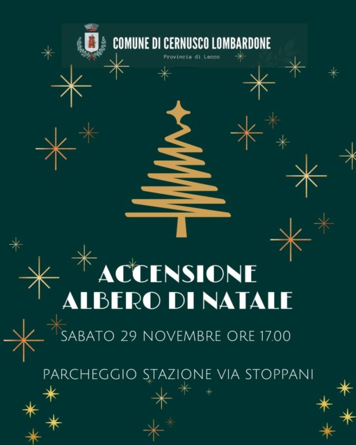 Sabato 29 novembre alle ore 17.30 al Parcheggio della stazione via Stoppani ci sarà l’accensione dell’albero dell’amministrazione realizzato con cura dal Gruppo Alpini. L’evento sarà accompagnato dalle note del Corpo Musicale A. Pirovano