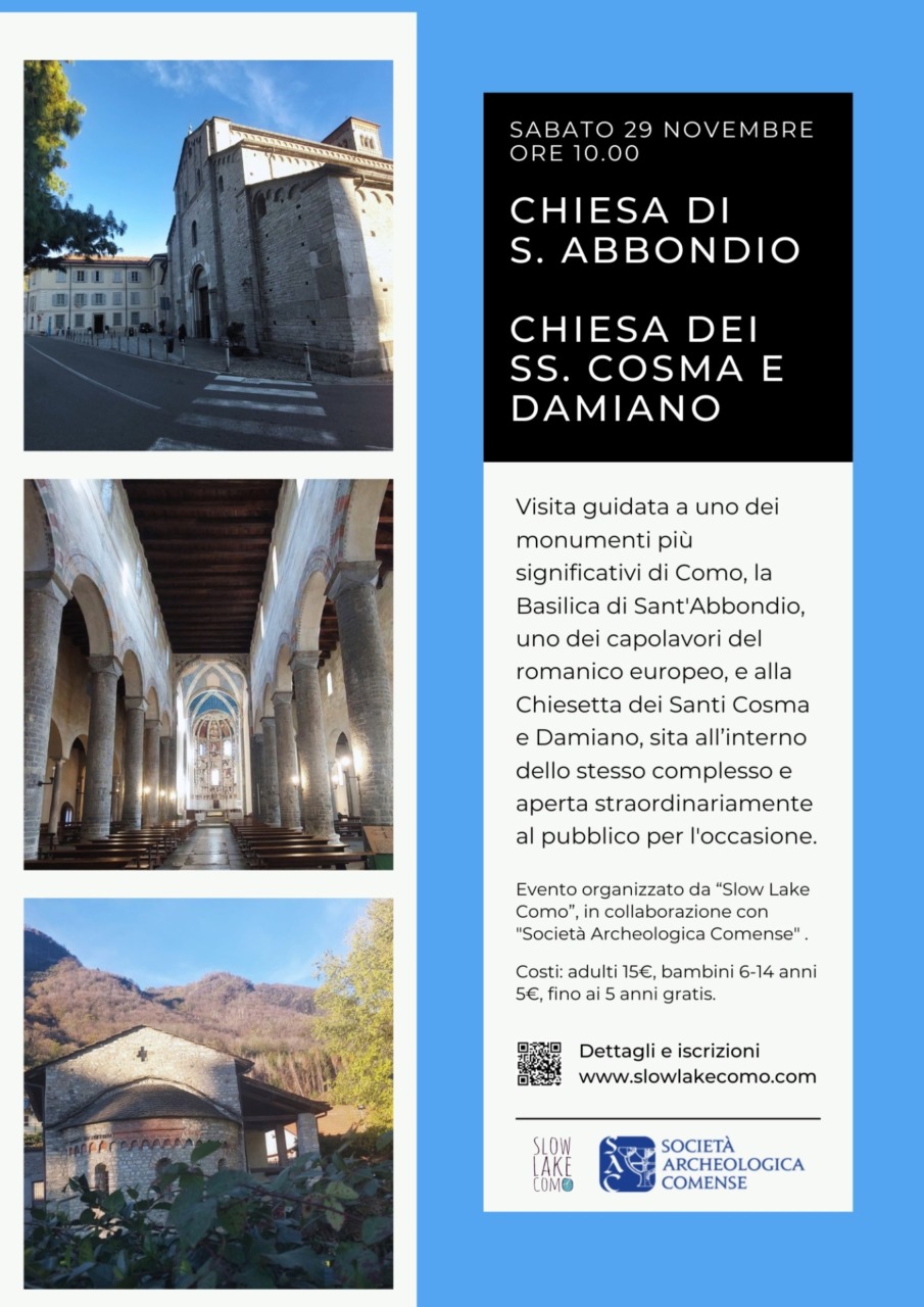 Sabato 29 novembre alle 10 si terrà l’ultima visita della stagione alla Basilica di Sant’Abbondio e alla chiesa dei Santi Cosma e Damiano a Como, un itinerario speciale tra storia e arte romanica. Il tour partirà dalla Basilica, capolavoro del romanico europeo con splendidi affreschi trecenteschi, per poi proseguire verso la piccola chiesa dei Santi Cosma e Damiano, aperta eccezionalmente e custode di preziose pitture medievali e rinascimentali. Un viaggio affascinante tra bellezza e identità, in collaborazione con la Società Archeologica Comense. Ritrovo in via Regina Teodolinda 35. Costi: 15€ adulti, 5€ bambini 6–14 anni.