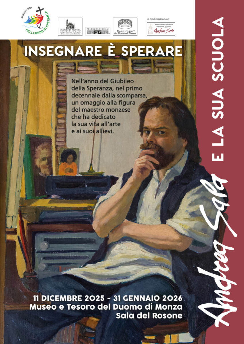 A Monza pochi artisti restano indimenticati come il celebre affreschista Andrea Sala, fondatore della prima Scuola di affresco in città diventata famosissima. A tal proposito la Fondazione Gaiani – Museo e Tesoro del Duomo di Monza invita i monzesi a riscoprire l’opera del maestro monzese che ha dedicato la vita all’arte, all’insegnamento, ai suoi allievi, con la mostra “Andrea Sala e la sua scuola. Insegnare è sperare”. L’appuntamento è fino al 31 gennaio (Dal martedì alla domenica, dalle 9 alle 13 e dalle 14 alle 18) all’interno del Museo e Tesoro del Duomo di Monza, nella splendida cornice della Sala del Rosone.