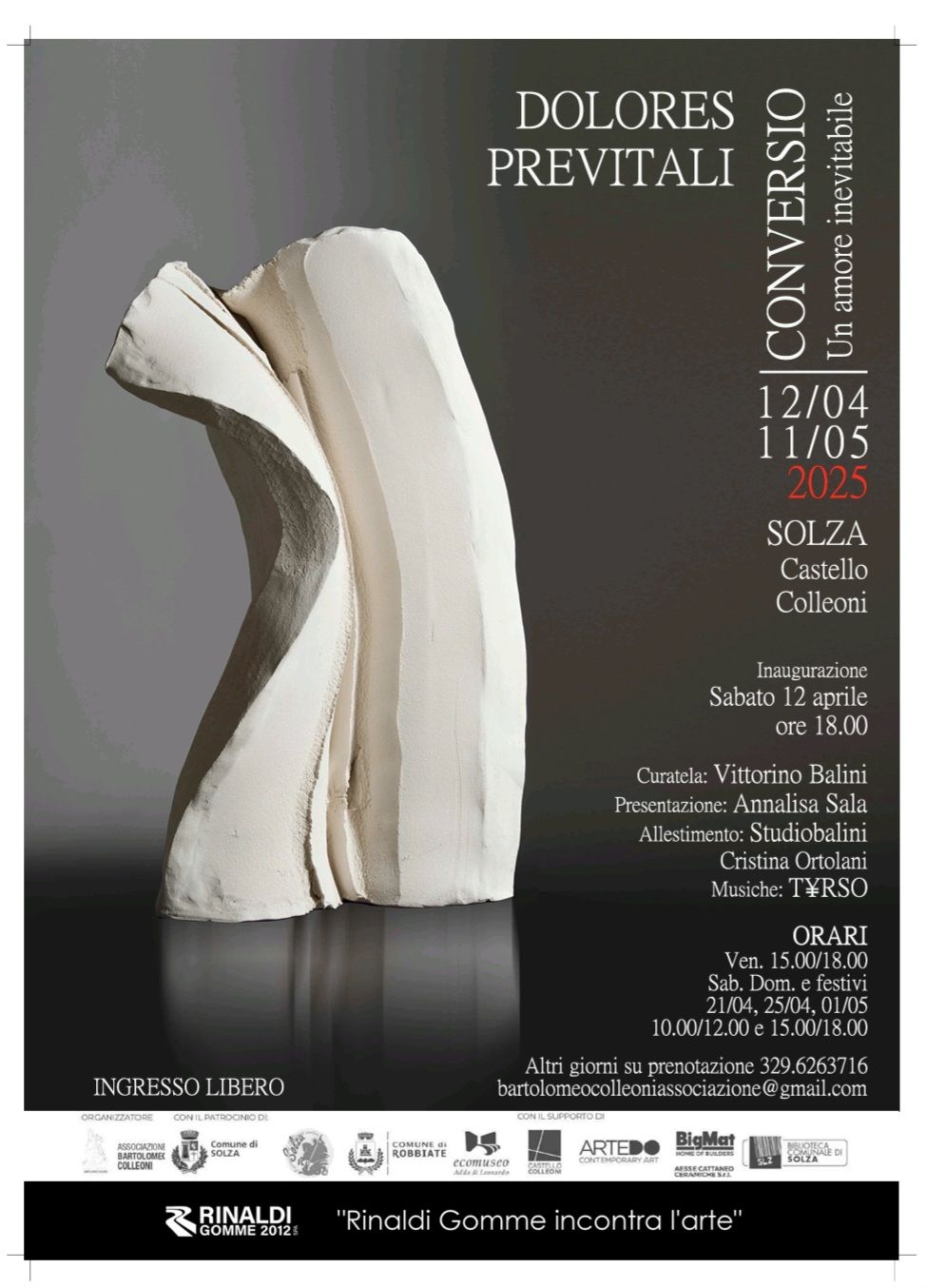 Un incontro inaspettato tra bronzo, terracotta e gesso, che racconta la fragilità dell’animo umano: è «Conversio – un amore inevitabile», la nuova mostra di Dolores Previtali, in programma dal 12 aprile all’11 maggio 2025 al Castello Colleoni.