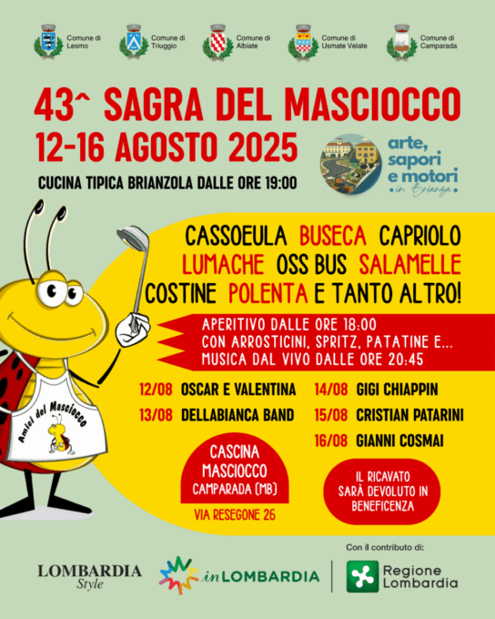 Mancano pochi giorni alla partenza di una delle feste estive per antonomasia: la Sagra del Masciocco. La storica kermesse organizzata dall’associazione Amici del Masciocco con il patrocinio del Comune di Camparada, arrivata quest’anno alla sua 43esima edizione, terrà compagnia ai brianzoli che non sono ancora partiti per le ferie da martedì 12 a sabato 16 agosto.