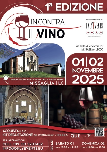 Nel fine settimana il Monastero della Misericordia ospita la prima edizione dell’evento «Incontra il vino», promosso da Only Events. Un connubio tra amanti di Bacco e arte, ci sarà infatti la possibilità di degustare svariati vini ed ammirare tante vignette a tema. Durante la rassegna il nostro vignettista Giovanni Beduschi presenterà infatti una mostra di vignette da lui organizzata dedicata al  vino e un’altra che ha come tema il cibo, in particolare i piatti della tradizione italiana. L’evento rispetterà i seguenti orari di apertura:  sabato 1° novembre dalle 10.30 alle 21, mentre domenica 2 novembre  apertura sempre con orario continuato dalle 10  alle 19.