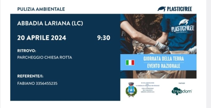 Un fine settimana dedicato alla Terra con Plastic Free Lecco.  Sarà un weekend di concretezza quello a cui parteciperanno alcuni comuni della Provincia di Lecco, ma non solo, in occasione della Giornata della Terra il prossimo 20 e 21 aprile 2024.
