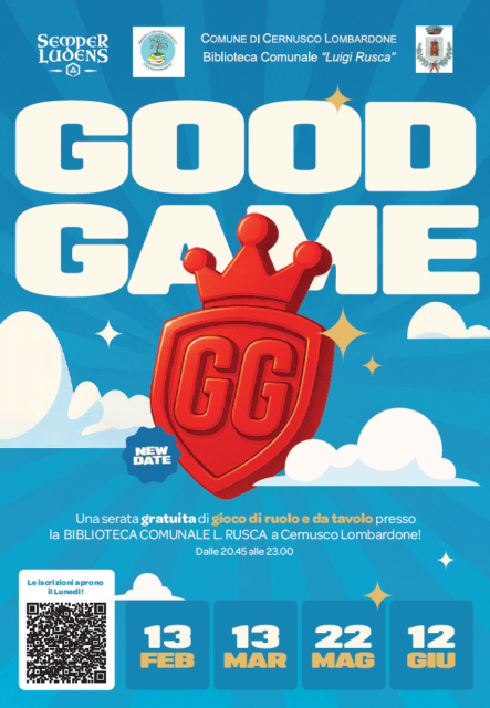L’iniziativa, battezzata Good Game, si terrà in biblioteca venerdì 13 febbraio, venerdì 13 marzo, venerdì 22 maggio e venerdì 12 giugno 2026, sempre dalle 20.45 alle 23.