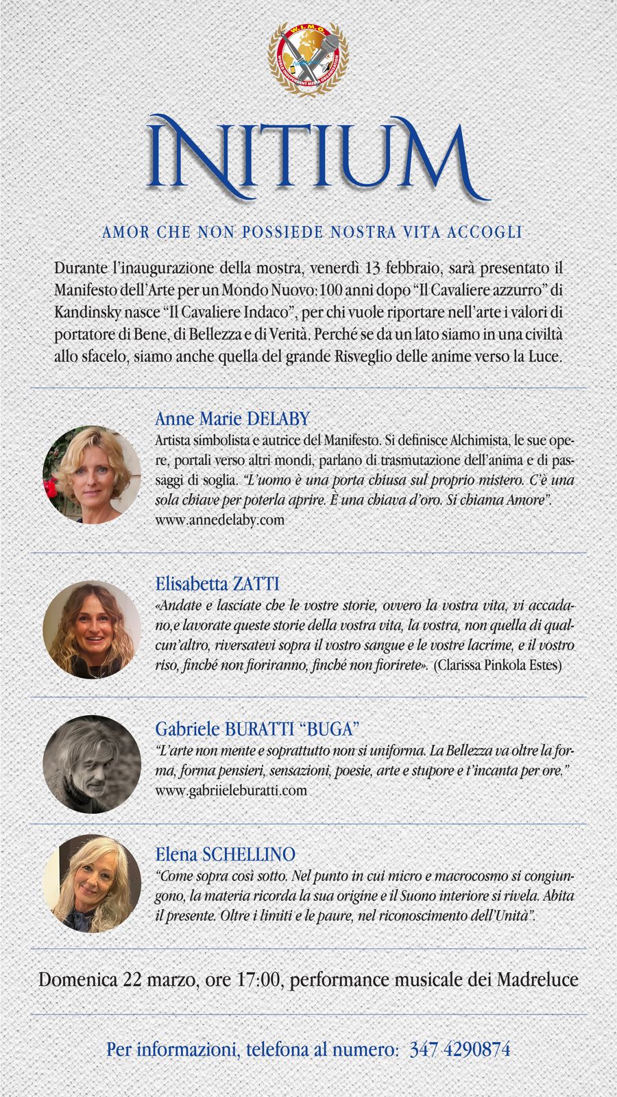 “Initium” riunisce linguaggi e sensibilità differenti, accomunati dalla volontà di offrire al pubblico percorsi di trasformazione e consapevolezza. Diverse le strade proposte, come diverse sono le visioni degli artisti coinvolti, a testimonianza di come l’arte possa declinarsi in molte forme pur tendendo verso una medesima ricerca di luce.