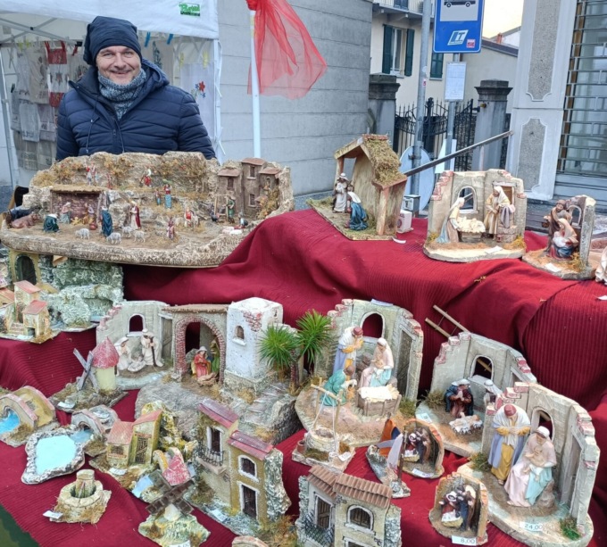 Tanti i venditori giunti in primo mattino con i loro prodotti natalizi: presepi realizzati artigianalmente, confezioni per regali, di tutto e di più.
