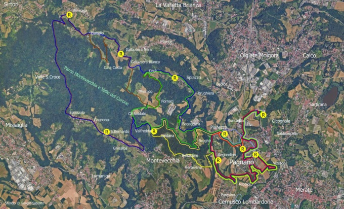 I comuni attraversati dalla camminata sono Merate, di cui Pagnano è frazione, Olgiate Molgora, Montevecchia, La Valletta Brianza, Cernusco Lombardone e Missaglia.