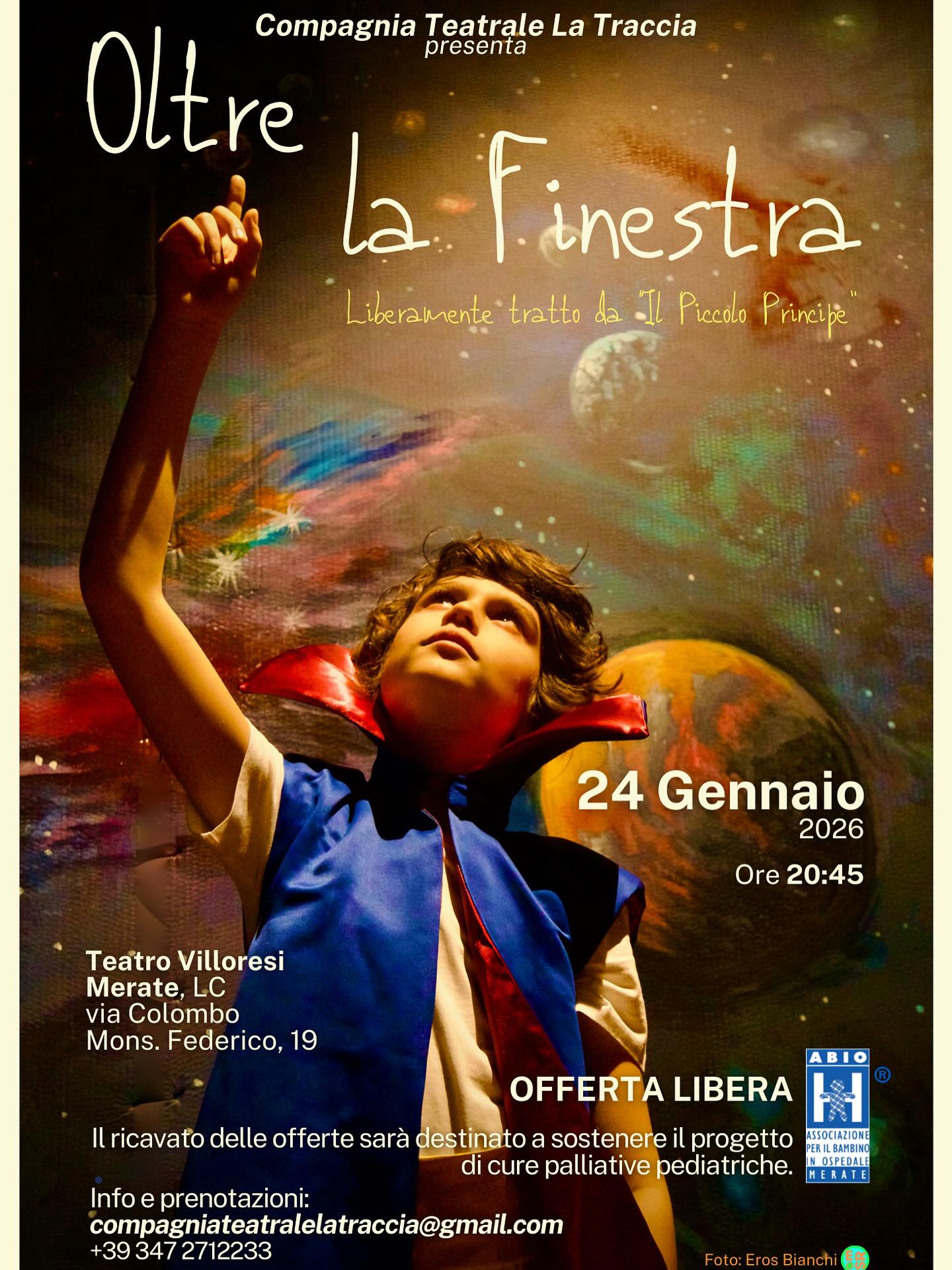 Il teatro del collegio Villoresi di via Monsignor Colombo ospiterà il prossimo 24 gennaio “Oltre la finestra”, spettacolo a cura della compagnia teatrale La Traccia, liberamente ispirato a “Il piccolo principe”.