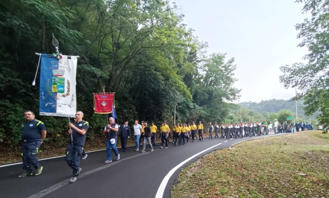 “Quello che è successo pochi istanti fa – ha sottolineato monsignor Rolla, riferendosi all’alpino che ha accusato un malore – potrebbe costituire un argomento di predica: sentirsi male in mezzo alla gente è qualcosa che ci dà fastidio, ma ci insegna la caducità della nostra vita. Il Signore ci sorprende sempre, proprio in questi eventi. Oggi è un momento importante per la vostra comunità: il ricordo dei novant’anni della fondazione del vostro gruppo Alpini. Voi vi mettete a disposizione della gente, soprattutto nelle calamità. Stiamo vivendo tempi molto confusi e voi rappresentate un esempio da seguire. Nei nostri cuori si combatte una battaglia ogni giorno, ma chiediamo l’aiuto di Dio per rimanere uniti a Lui, in previsione di un domani, quando ci verrà richiesto il bene da noi fatto, poiché davanti al giudizio di Dio non porteremo niente di materiale, ma solo l’amore compiuto con le opere di carità”.