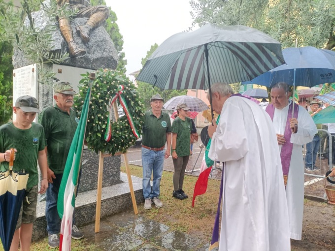 Il momento di festa si è infine concluso con la posa della corona al Monumento ai Caduti, nonostante la pioggia incessante.