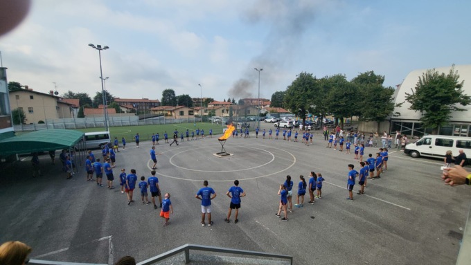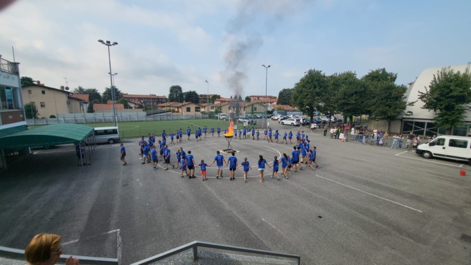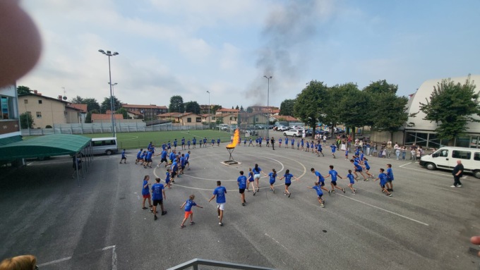 La fiaccolata è arrivata all’alba del 4 settembre, in particolare alle 6.30, a Sotto il monte. Ai partecipanti si sono aggiunti e ragazzi delle medie che hanno corso fino a raggiungere alle 8.30 i più piccoli delle elementari. Poi giù per l’oratorio e per festeggiare la fine della corsa. La Messa è stata celebrata da don Matteo. Una bellissima esperienza che ha visto le scalinate piene di persone che ammiravano lo spettacolo di fuoco preparato dai ragazzi vestiti tutti rigorosamente in maglia blu. Il calore del fuoco e degli animi dei presenti hanno rallegrato una giornata di festa.