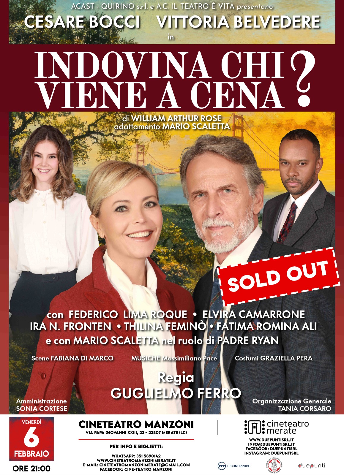 “Indovina chi viene a cena?” arriva al Teatro Manzoni di Merate venerdì 6 febbraio 2026 alle ore 21.00, con protagonisti Vittoria Belvedere e Cesare Bocci. Anche questa data registra il tutto esaurito, confermando il grande interesse del pubblico per uno dei titoli più amati del teatro contemporaneo.