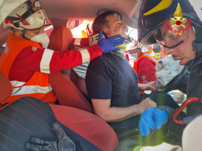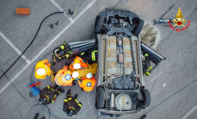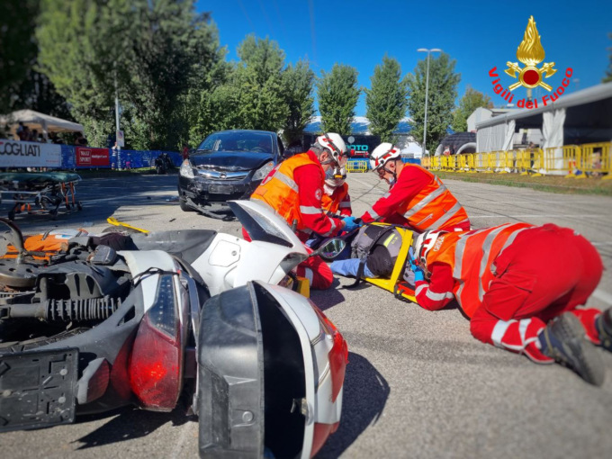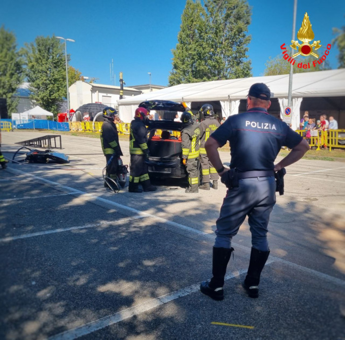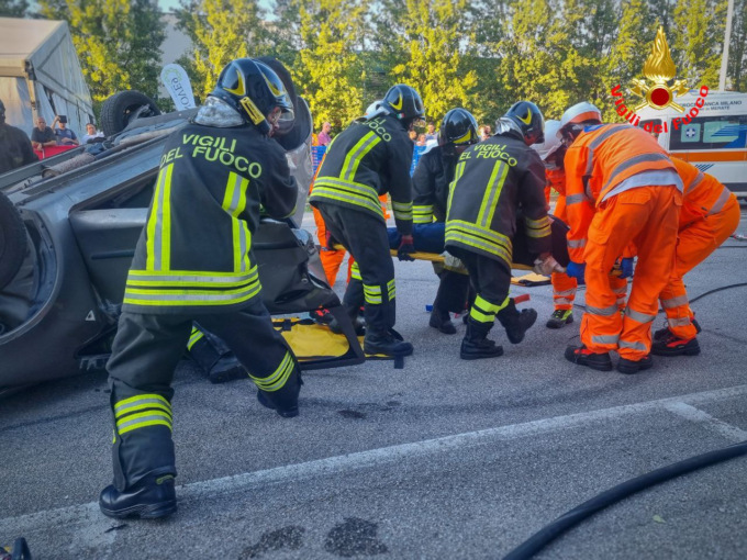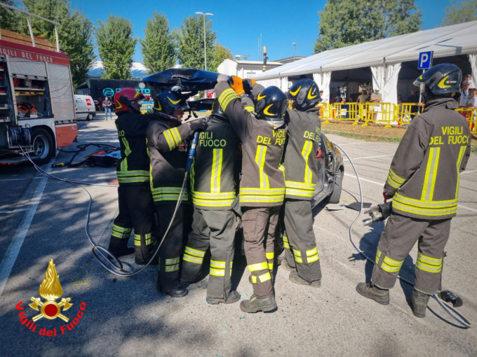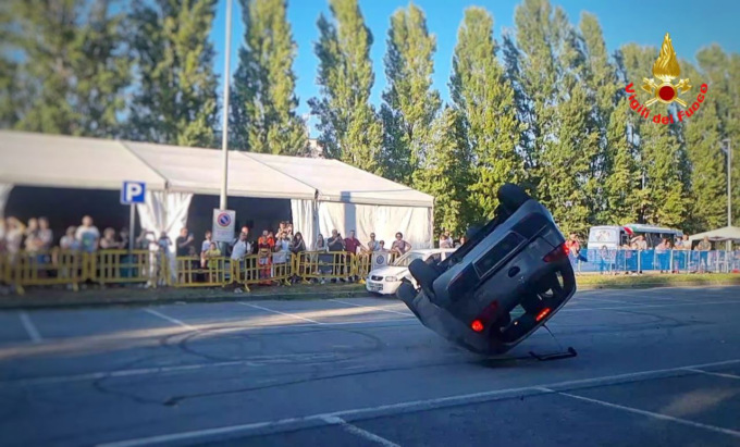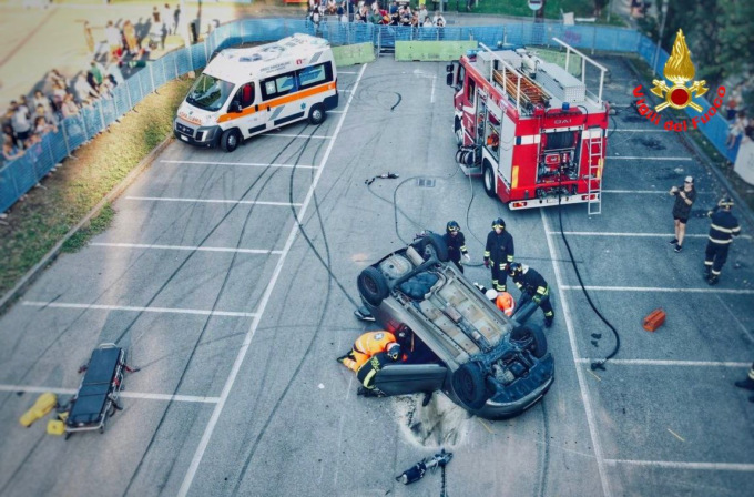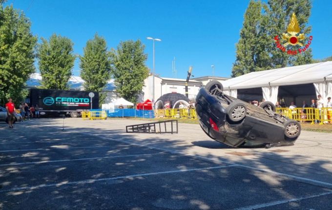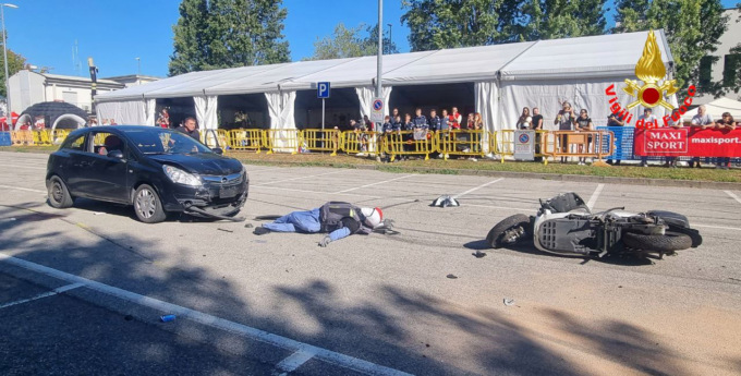 Uno stuntman si è occupato di simulare l’incidente e, subito dopo si è mostrato al pubblico come si attivava la macchina dei soccorsi con l’intervento delle ambulanze, dei Vigili del fuoco, della polizia stradale di Lecco e del carroattrezzi per il recupero del mezzo e la bonifica della strada.