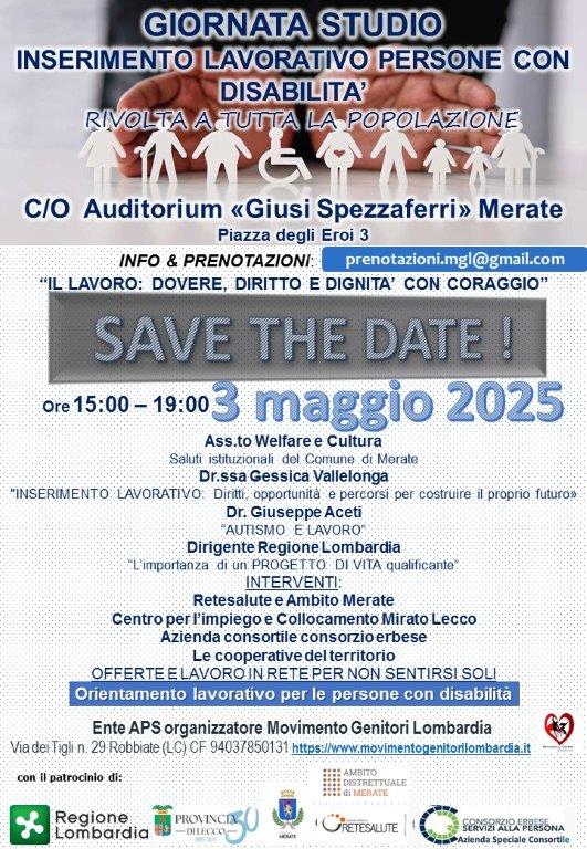 Sabato 3 maggio 2025 l’auditorium Giusi Spezzaferri ospiterà l’incontro dal titolo «Il lavoro: dovere, diritto e dignità, con coraggio. Per diventare grandi insieme. Nessuno è solo» organizzato dall’associazione Movimento Genitori Lombardia con il patrocinio del Comune di Merate, l’Ambito, Retesalute e il Consorzio Erbese.