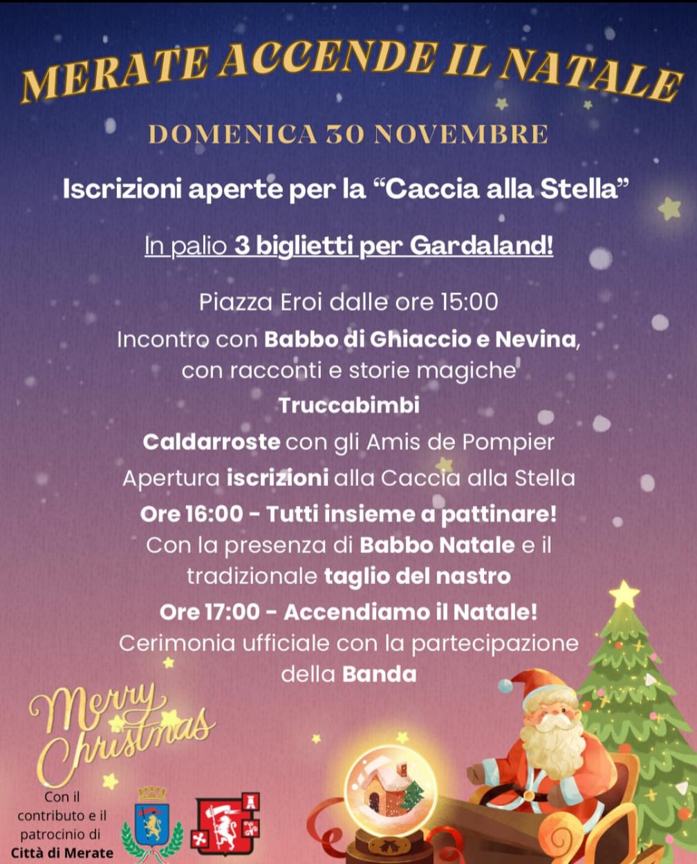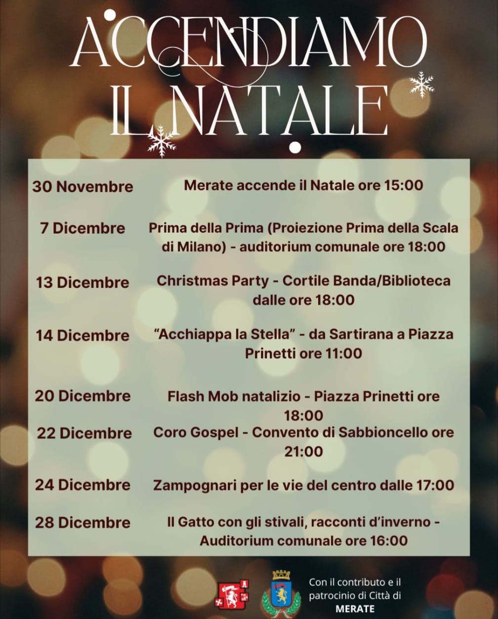 Merate accende il Natale e a partire da domenica 30 novembre, con la Pro Loco e il contributo del Comune sono in arrivo numerosi eventi a tema natalizio.