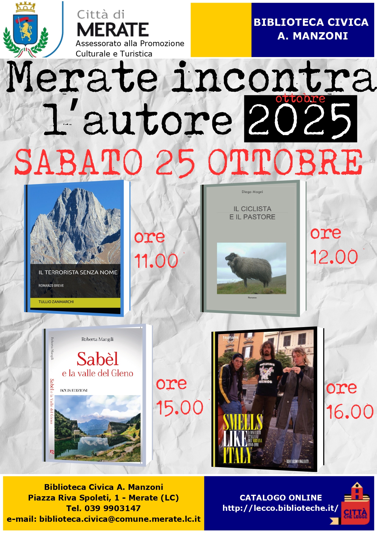 Merate incontra l’autore, torna l’appuntamento promosso dalla biblioteca civica Alessandro Manzoni e dall’assessorato alla Cultura di Merate.