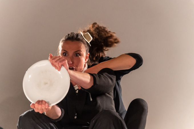 Un lungo tavolo bianco. Forchette, coltelli, cucchiai e cucchiaini. Piatti grandi, piccoli, lisci, tondi. Tazze e bicchieri. E il cibo non c’è? Forse qualche chicco arriverà. Due bizzarri personaggi aspettano l’inizio di un pranzo da re inventandosi un nuovo modo di apparecchiare. Tutto diventa musica canto gioco.